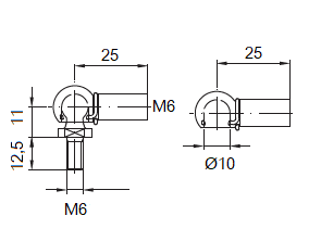 RVS 316 kogelgewricht met M6 schroefdraad. Dit kogelgewricht zorgt voor een verlenging van 25mm van de inbouwlengte. Kogeldiameter 10mm. De pin aan de kogel heeft schroefdraad M6.