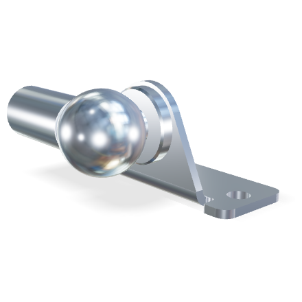 Kogelgewricht, met beugel aan de buitenzijde, voor een gasveer met 8 of 10mm stangdiameter en M8 schroefdraad. Het kogelgewricht zorgt voor een verlenging van 30mm van de inbouwlengte en kan zowel aan de stang- als aan de huiszijde worden bevestigd. De beugel heeft een hoogte van 16mm. De kogel heeft een diameter van 13mm.