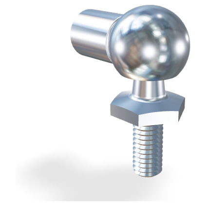 Kogelgewricht voor een gasveer met 8 of 10mm stangdiameter en M8 schroefdraad. Het schroefdraad aan de kogel is M6. Dit kogelgewricht zorgt voor een verlenging van 18mm van de inbouwlengte en kan zowel aan de stang- als aan de huiszijde worden bevestigd. Kogeldiameter 10mm. Let op: maximum kracht 800N!